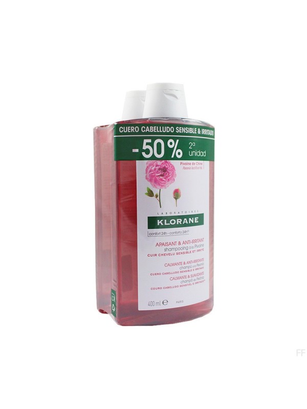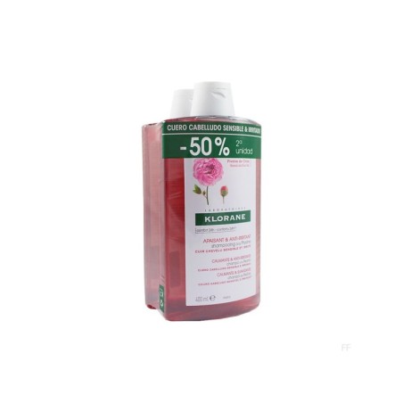 Klorane Pack Champú De Peonia Para Cuero Cabelludo Sensible 2x 400ml