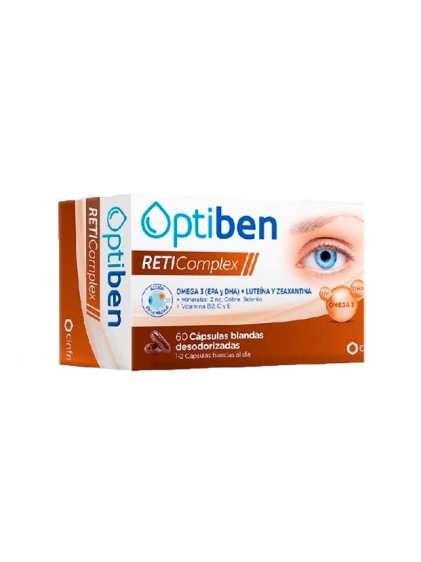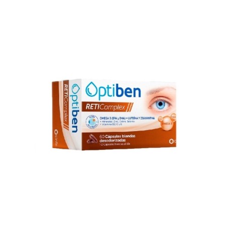 Optiben reticomplex 60 cápsulas blandas es un complemento alimenticio formulado para apoyar la salud ocular y en particular el mantenimiento de la función visual normal. Su composición combina varios nutrientes clave: - ácidos grasos omega‑3 (epa y dha), que intervienen en la estructura de los tejidos oculares. - carotenoides como luteína (20 mg) y zeaxantina (4 mg) que se concentran en la mácula y actúan como filtros frente a la luz azul. - vitaminas con acción antioxidante como la c (160 mg) y la e (24 mg) para proteger las células oculares frente al estrés oxidativo. - minerales como zinc (20 mg), cobre y selenio que contribuyen al mantenimiento normal de la visión.