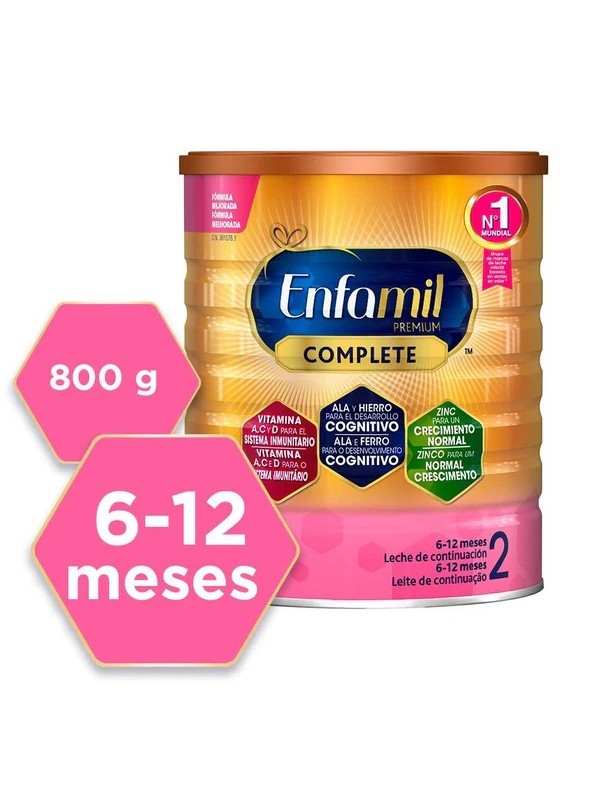 Enfamil premium complete 2 contiene hierro, que favorece el normal desarrollo cognitivo y ayuda al sistema inmune. Contiene numerosos minerales, tales como el calcio para el desarrollo de los huesos y los dientes, así como el zinc, que es esencial para el crecimiento. Enfamil premium complete 2 es una leche de continuación formulada con todas las vitaminas requeridas, tales como vitamina c para el sistema inmune y vitamina d para el fortalecimiento y crecimiento de los huesos. También contiene fibra dietética en forma de galactooligosacáridos (gos) todas las vitaminas contribuyen a la adecuada ingesta nutricional de su bebé. Enfamil es una marca experta en nutrición infantil y leches de fórmula con más de 100 años de experiencia, y líder en innovación científica, gracias a múltiples estudios.