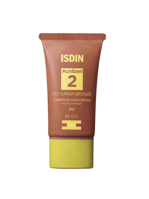 Descubre una piel sin brillos y con un tono perfecto con isdin oily skin acniben cc+ cream color bronze. Especialmente formulada para las necesidades de las pieles grasas o con tendencia acneica, esta crema correctora de color (cc cream) es el paso final ideal para tu rutina diaria de cuidado facial. Su ligero tono bronze se adapta a las pieles más bronceadas o de fototipos oscuros, aportando una cobertura de aspecto natural que camufla al instante rojeces, granitos y marcas provocadas por el acné. Su textura en gel-crema es ultraligera, de rápida absorción y no deja sensación grasa ni pesada en el rostro.
